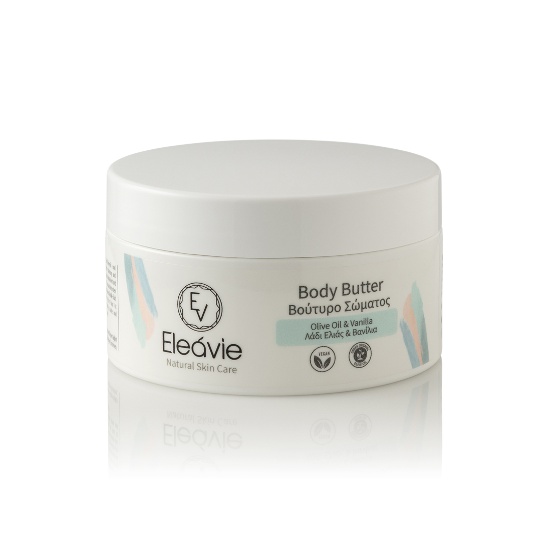 Βούτυρο Σώματος με βιολογικό Ελαιόλαδο και Βανίλια, το οποίο προσφέρει στο δέρμα την πλούσια θρέψη
