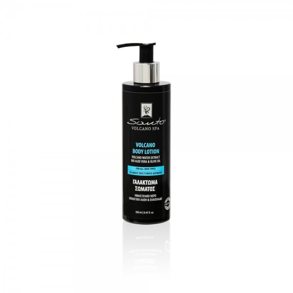 Η νέα Λοσιόν Σώματος Santo Volcano spa με ηφαιστειακό νερό, μέταλλα και ιχνοστοιχεία ενυδατώνει και θρέφει την επιδερμίδα αφήνοντάς την λεία και απαλή. Ιδανική για καθημερινή χρήση, όλη τη διάρκεια του χρόνου. Υπέροχο άρωμα αναζωογόνησης & φρεσκάδας.