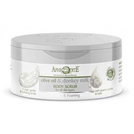 Το γάλα γαϊδούρας ηρεμεί ερεθισμούς, το υαλουρονικό οξύ συγκρατεί την υγρασία. Η λούφα και οι μικροκρύσταλλοι quartz αφαιρούν το ξηρό δέρμα και τους ρύπους. Κάντε απαλό μασάζ σε νωπό δέρμα και ξεβγάλτε. Επαναλάβετε 1-2 φορές την εβδομάδα.